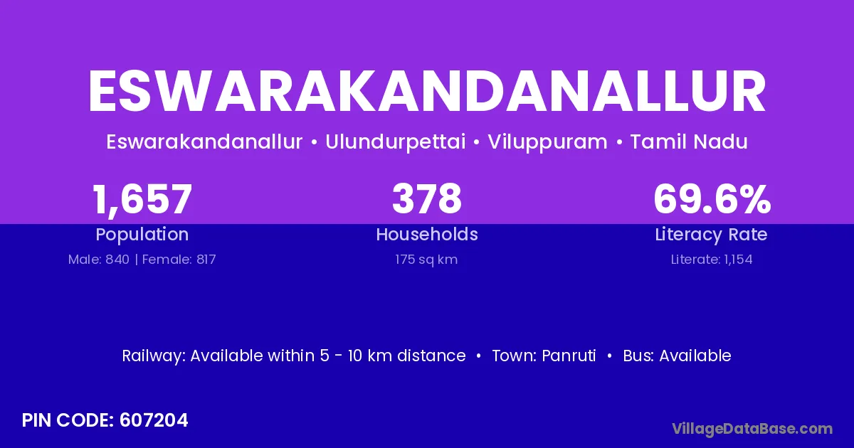 Panruti is the nearest town to Eswarakandanallur village for major economic activities