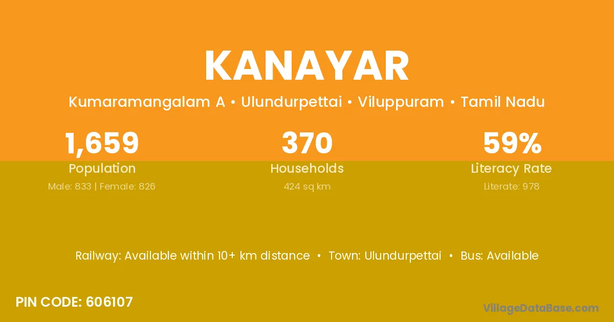 Ulundurpettai is the nearest town to Kanayar village for major economic activities