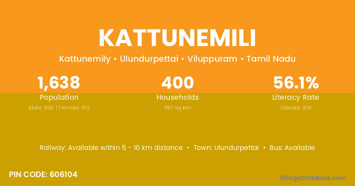 Ulundurpettai is the nearest town to Kattunemili village for major economic activities