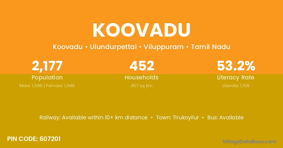 Tirukoyilur is the nearest town to Koovadu village for major economic activities