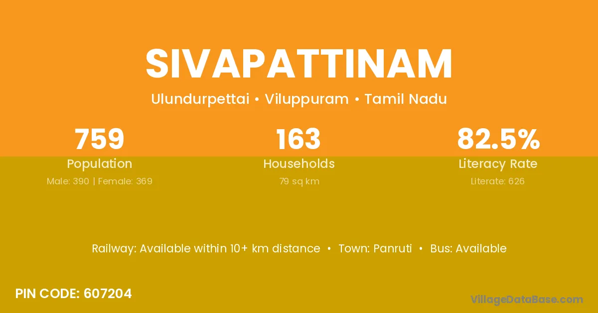 Sivapattinam village has a total population of 759 people, of which 390 are males and 369 are females.