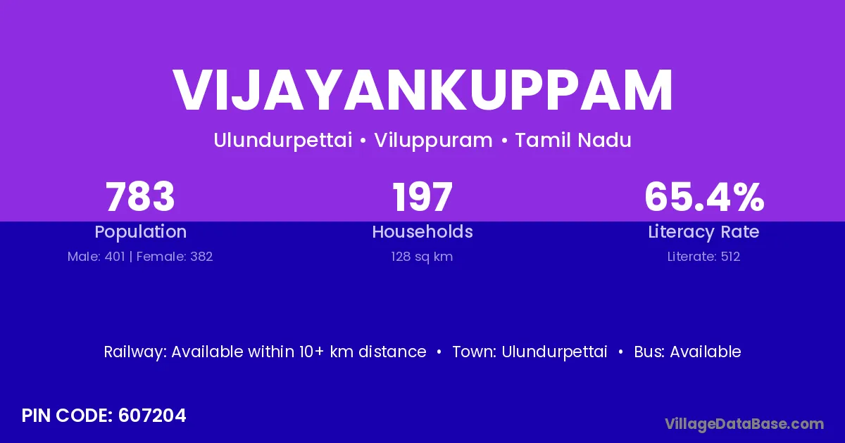 Ulundurpettai is the nearest town to Vijayankuppam village for major economic activities