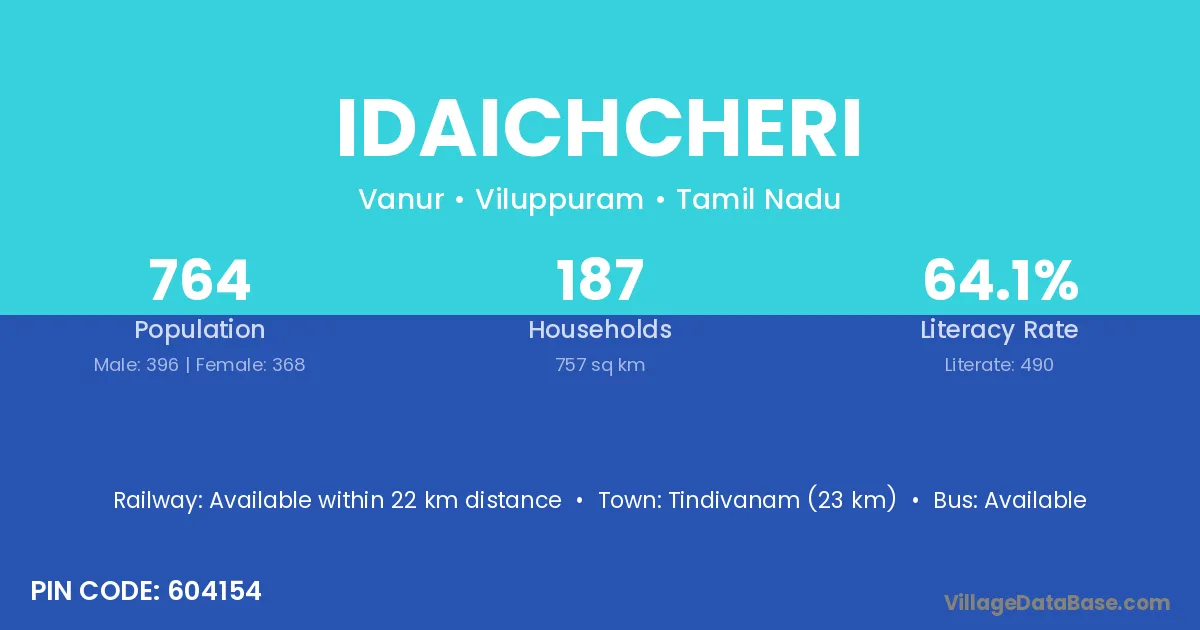 Tindivanam (23 km) is the nearest town to Idaichcheri village for major economic activities and is located approximately 23 km away.