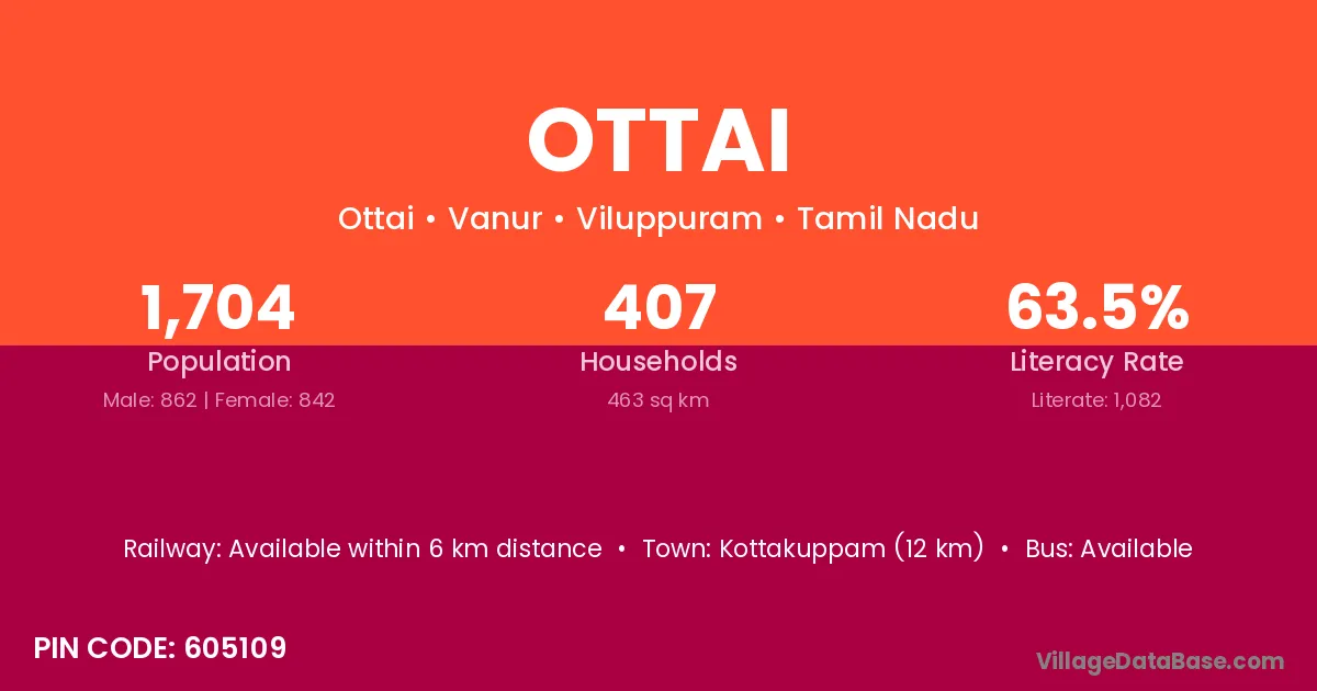 Kottakuppam (12 km) is the nearest town to Ottai village for major economic activities and is located approximately 12 km away.