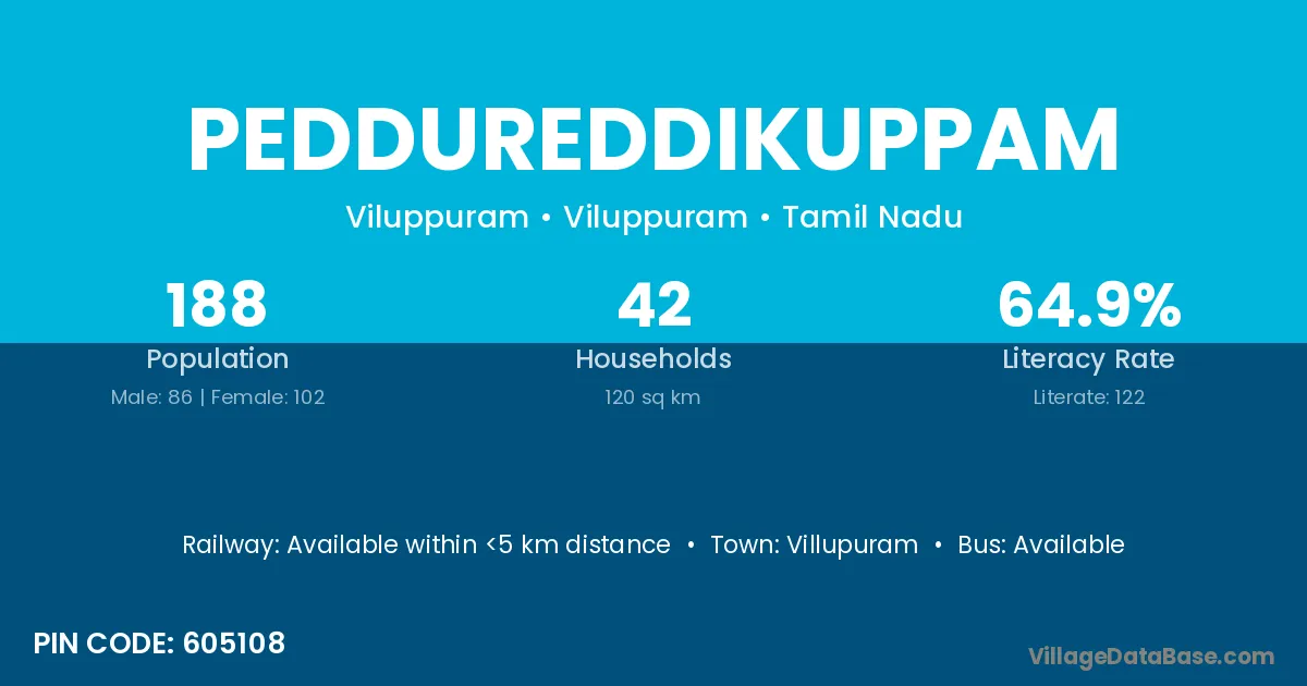 Villupuram is the nearest town to Peddureddikuppam village for major economic activities