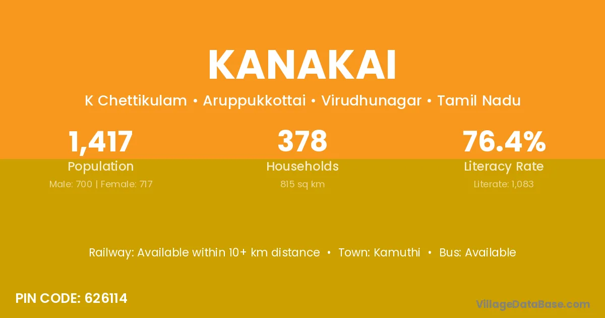 Kamuthi is the nearest town to Kanakai village for major economic activities