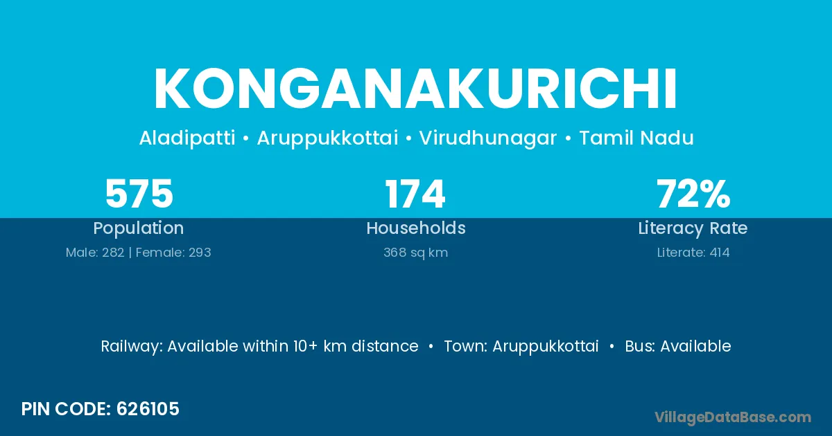 Aruppukkottai is the nearest town to Konganakurichi village for major economic activities