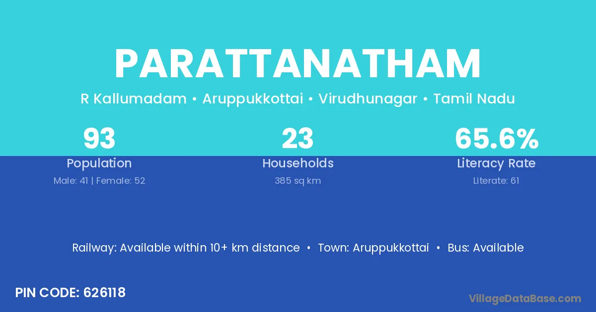 Aruppukkottai is the nearest town to Parattanatham village for major economic activities