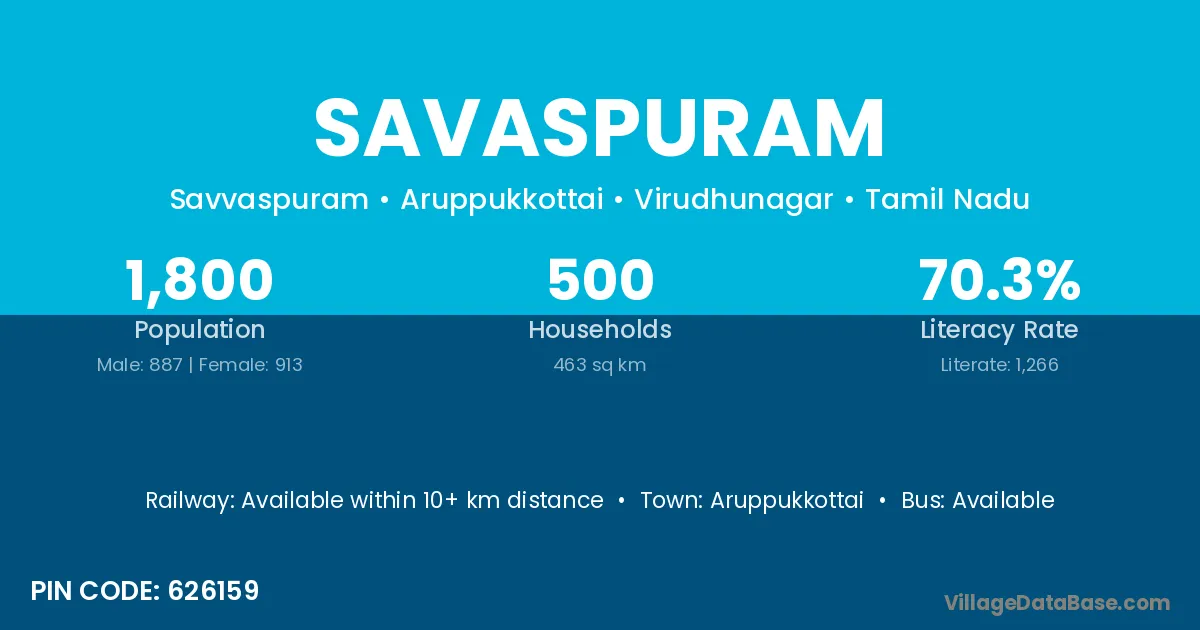 Aruppukkottai is the nearest town to Savaspuram village for major economic activities