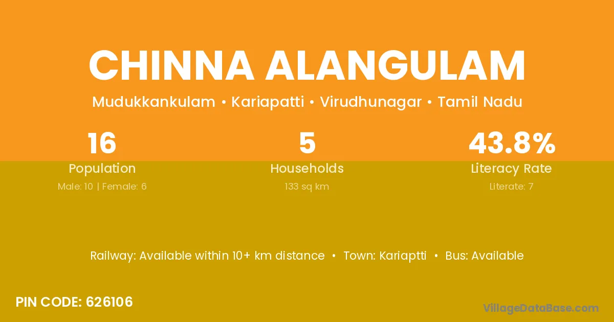 There are approximately 5 households in Chinna Alangulam village.