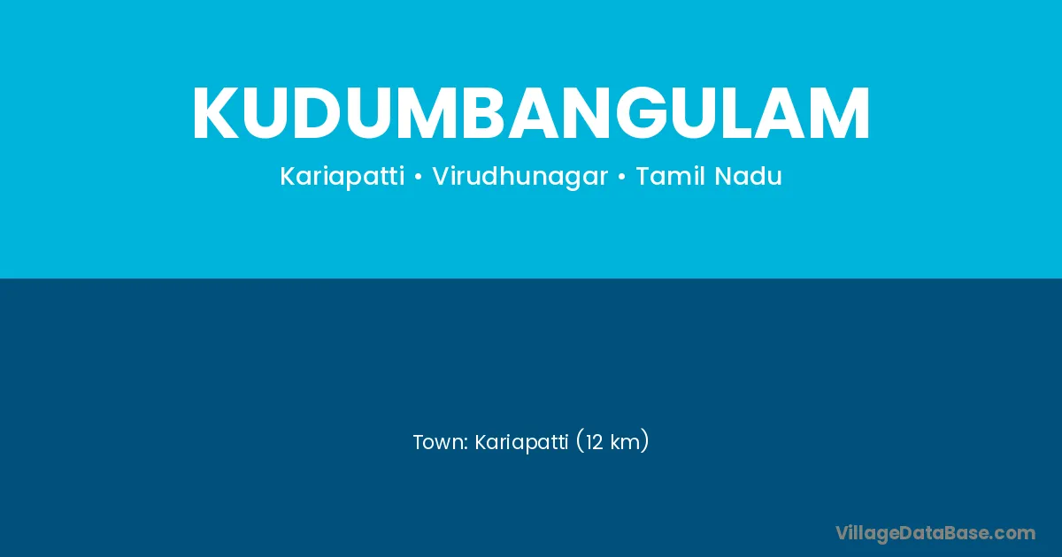 Kariapatti (12 km) is the nearest town to Kudumbangulam village for major economic activities and is located approximately 12 km away.