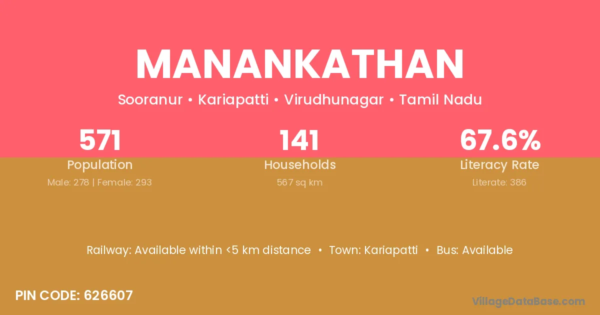 According to Census 2011 information, the village code of Manankathan village is 626607.