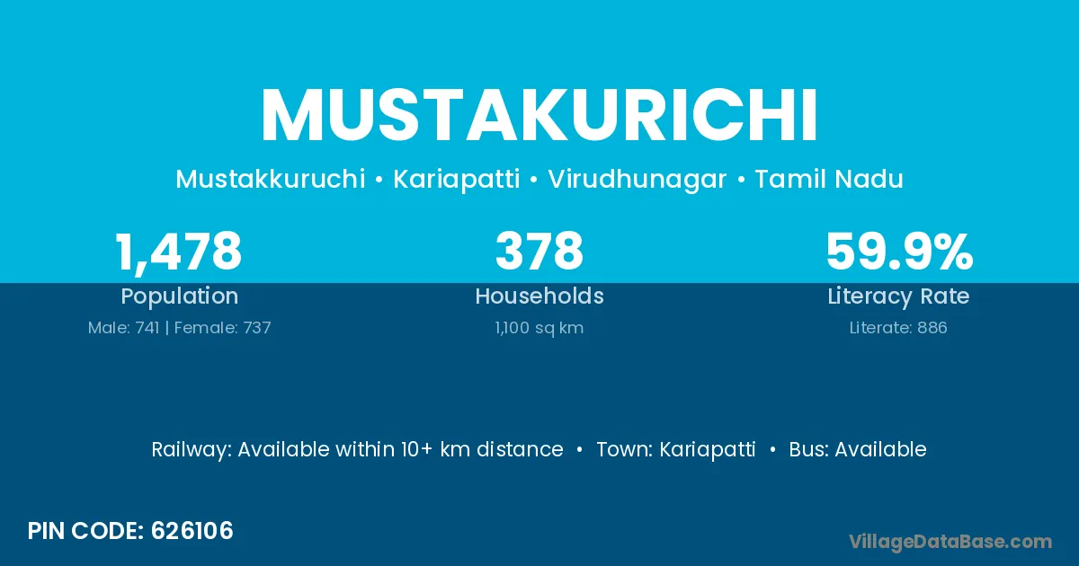There are approximately 378 households in Mustakurichi village.