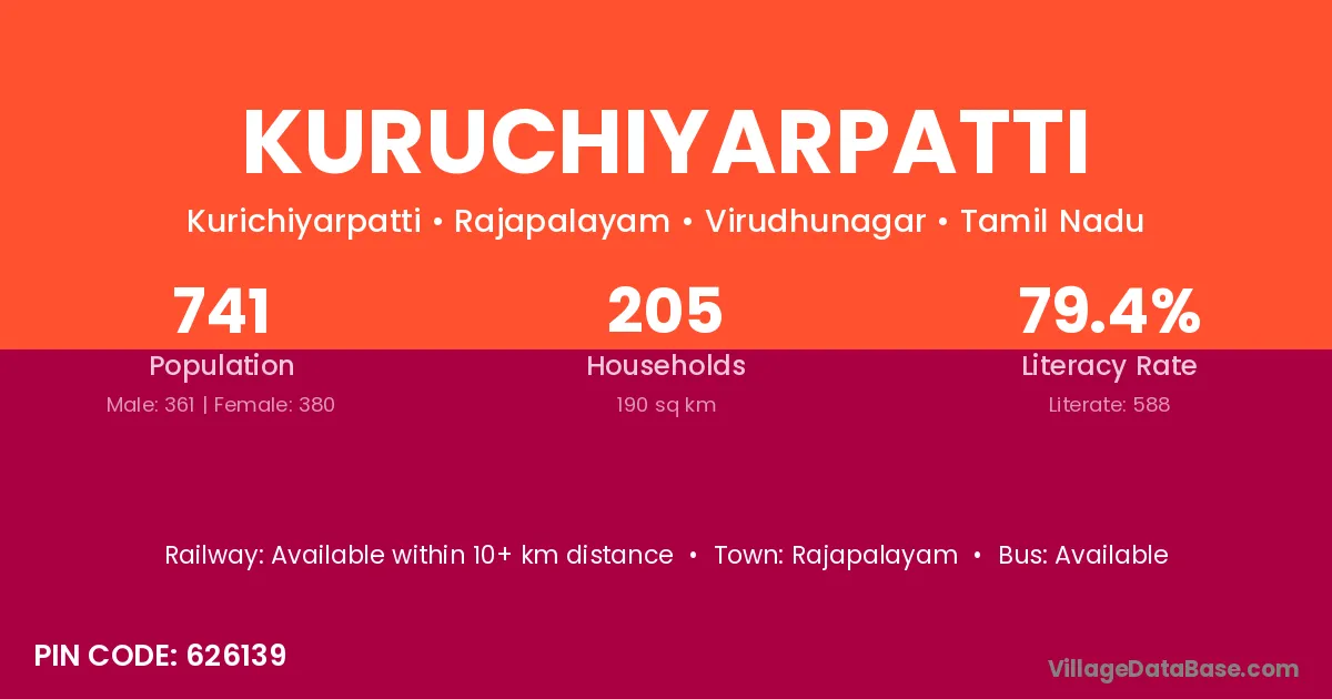 Rajapalayam is the nearest town to Kuruchiyarpatti village for major economic activities