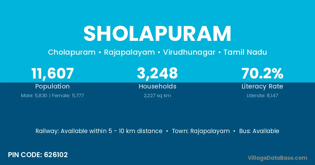 There are approximately 3,248 households in Sholapuram village.