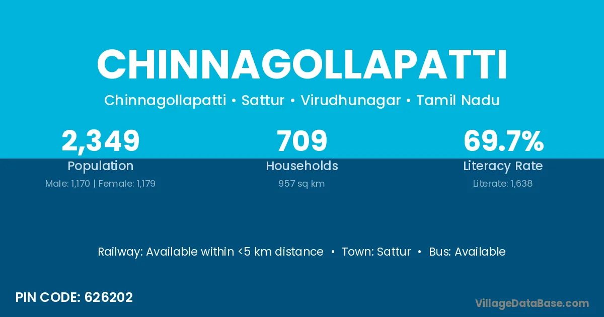 Sattur is the nearest town to Chinnagollapatti village for major economic activities