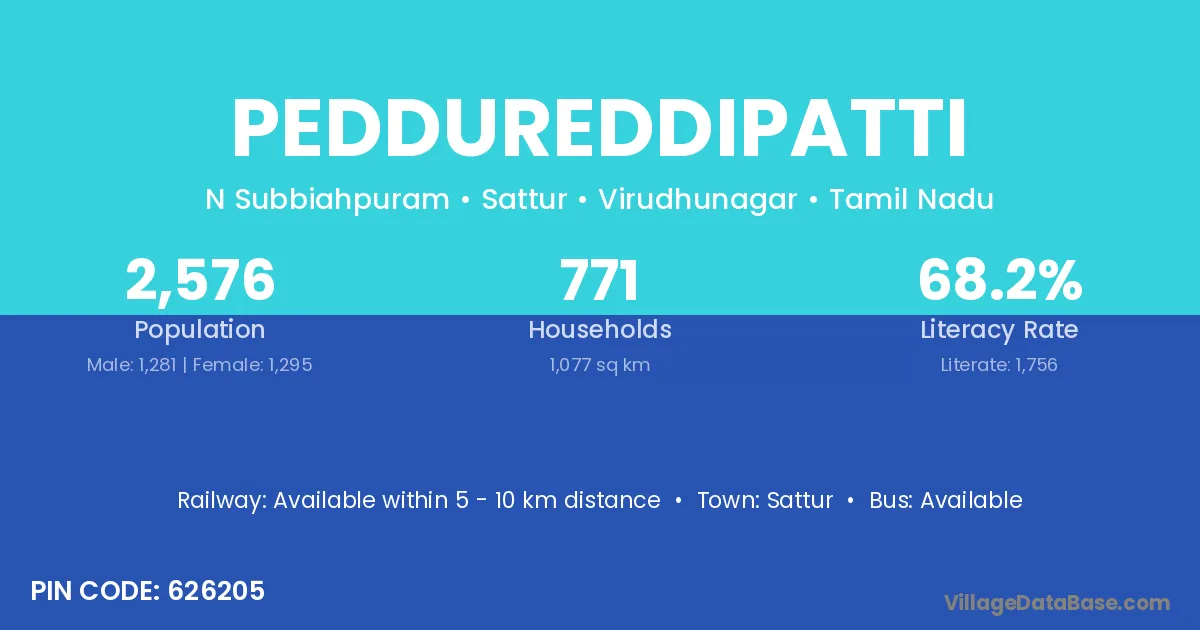 Sattur is the nearest town to Peddureddipatti village for major economic activities