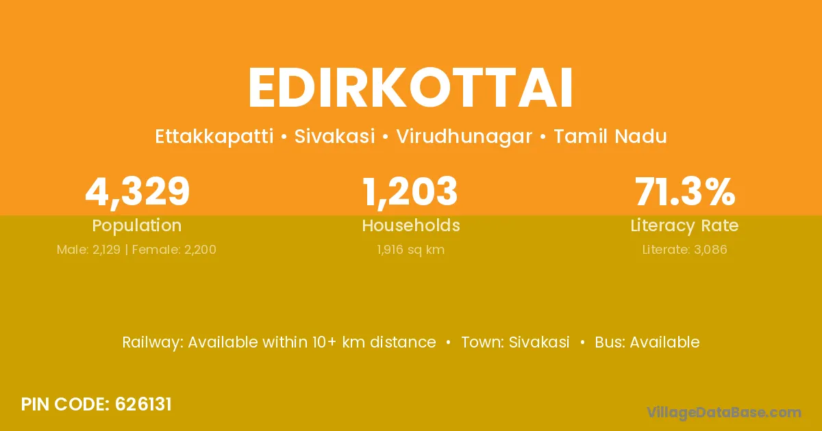 Sivakasi is the nearest town to Edirkottai village for major economic activities