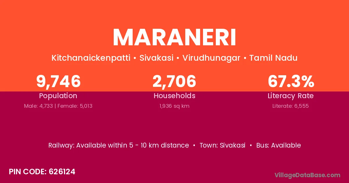 Sivakasi is the nearest town to Maraneri village for major economic activities