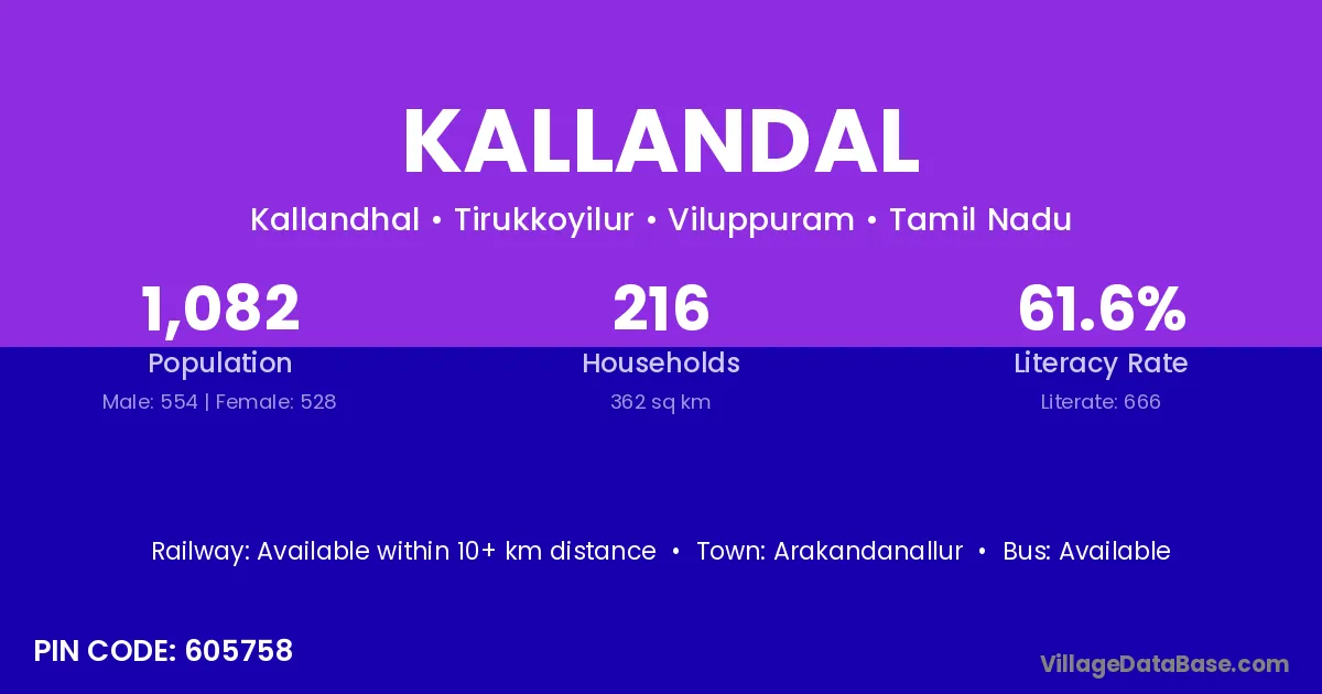 Tiruchuli is the nearest town to Kallandal village for major economic activities
