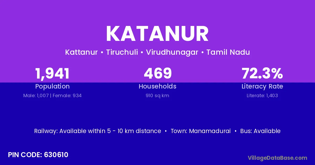 Manamadurai is the nearest town to Katanur village for major economic activities