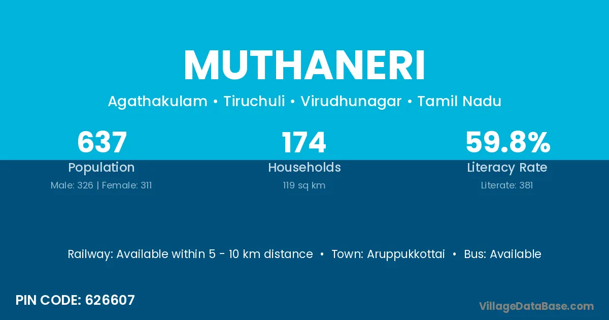 Aruppukkottai is the nearest town to Muthaneri village for major economic activities