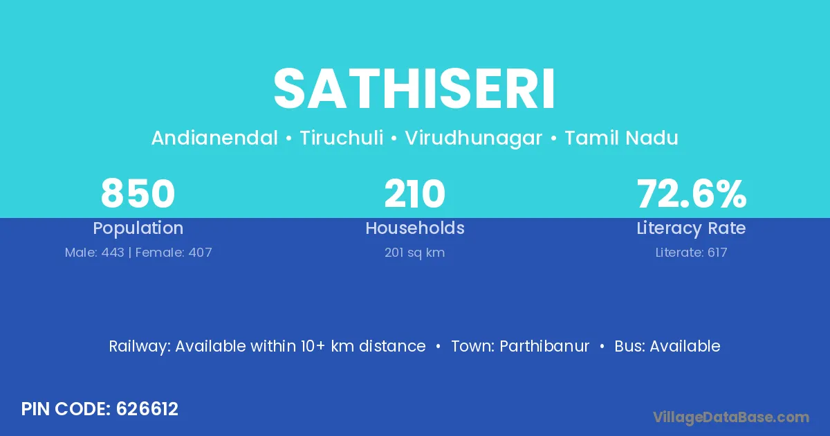 Parthibanur is the nearest town to Sathiseri village for major economic activities