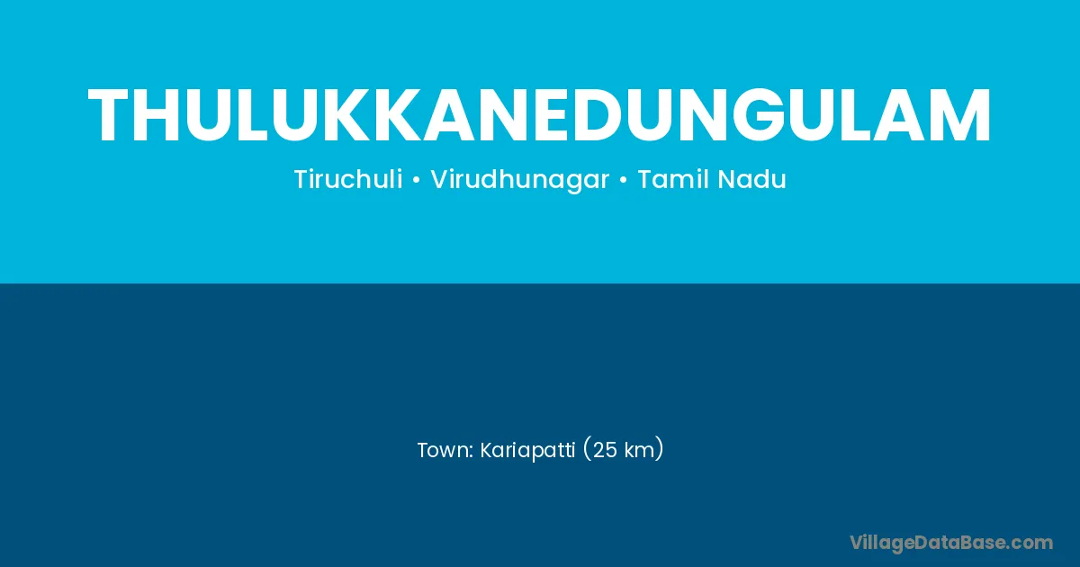 Kariapatti (25 km) is the nearest town to Thulukkanedungulam village for major economic activities and is located approximately 25 km away.