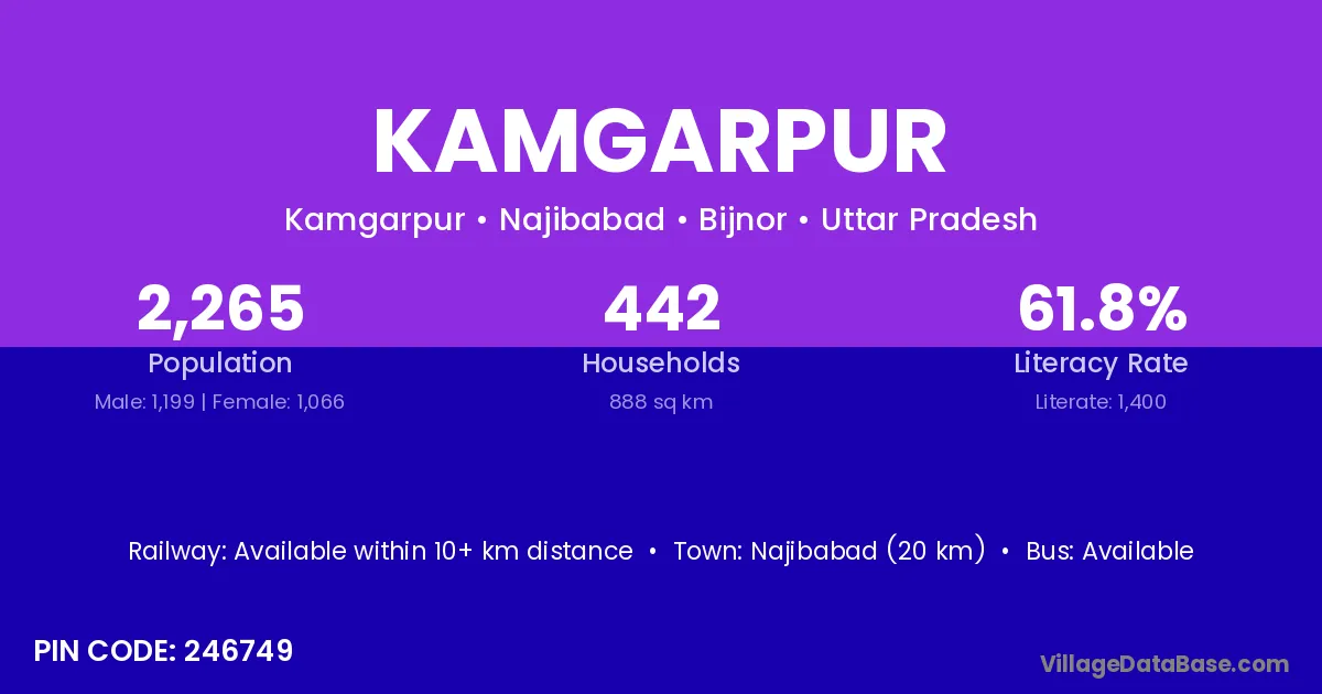 Adilabad (43 km) is the nearest town to Kamgarpur village for major economic activities and is located approximately 43 km away.