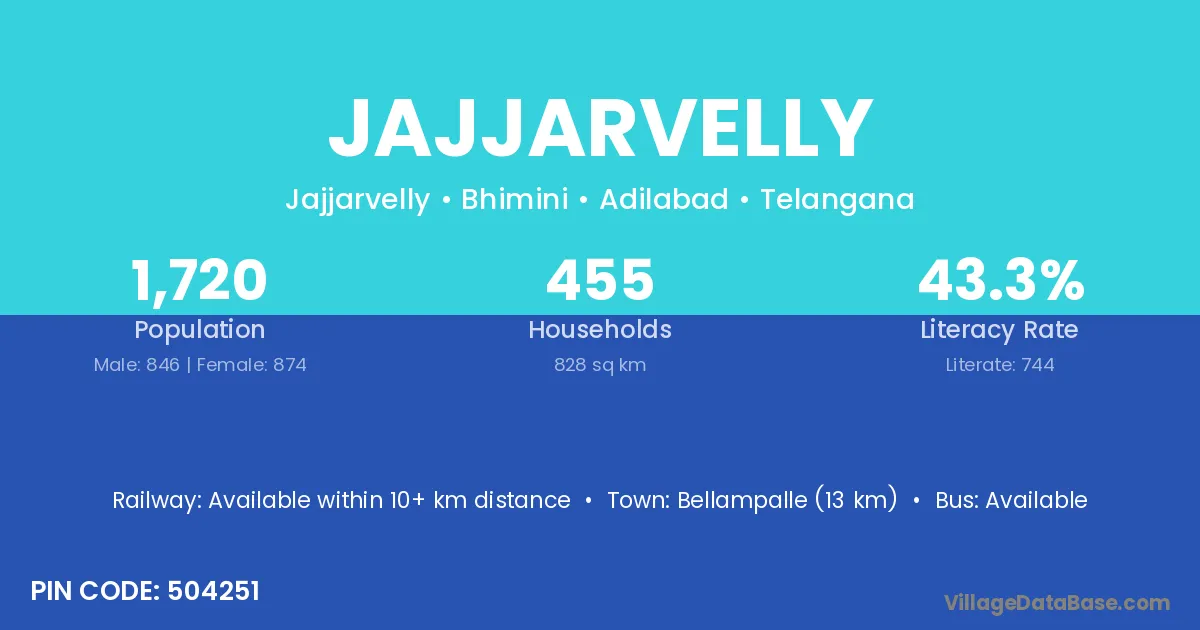 Bellampalle (13 km) is the nearest town to Jajjarvelly village for major economic activities and is located approximately 13 km away.