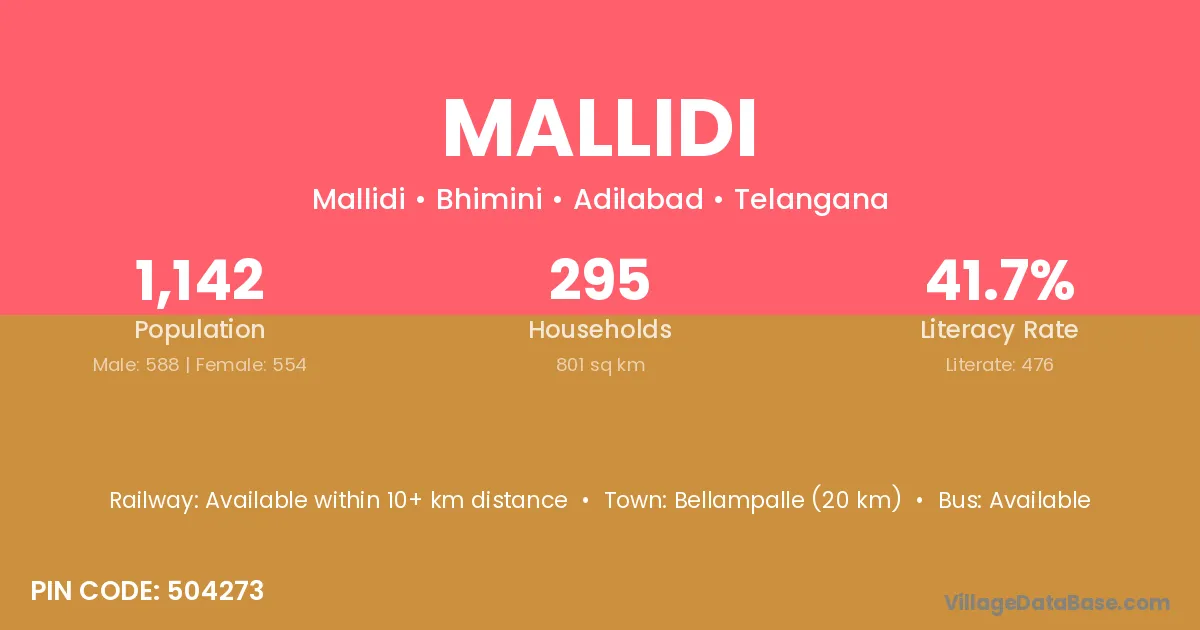 According to Census 2011 information, the village code of Mallidi village is 504273.
