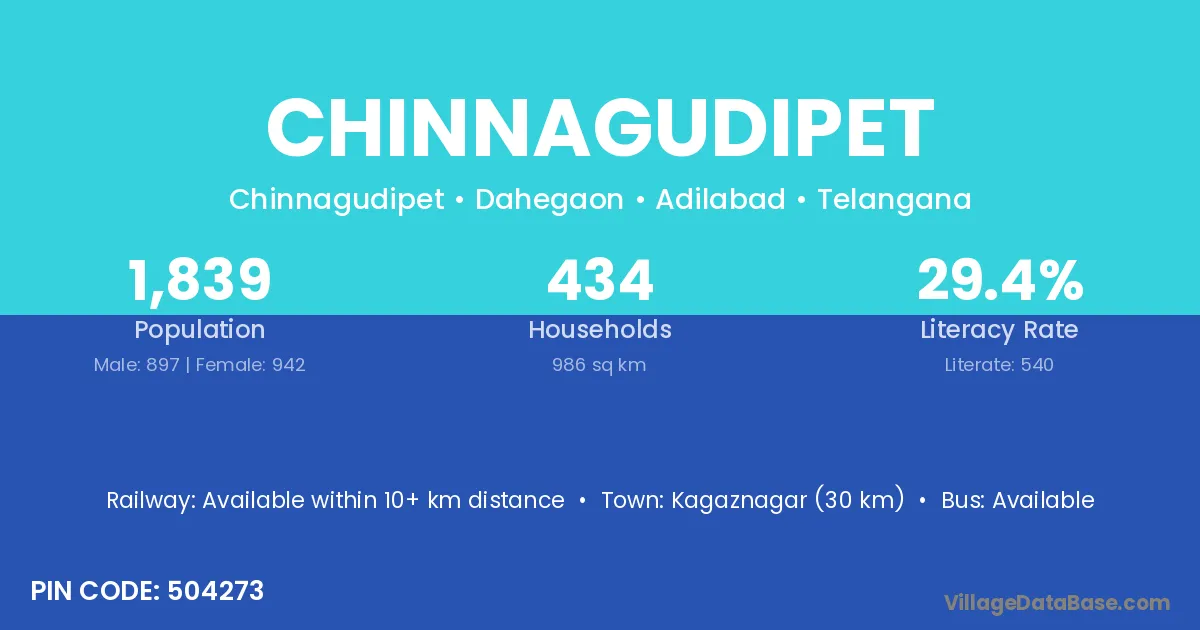 According to Census 2011 information, the village code of Chinnagudipet village is 504273.