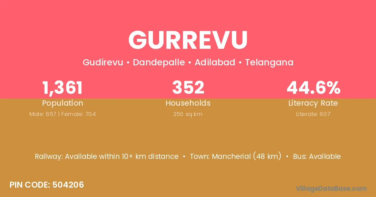 Mancherial (48 km) is the nearest town to Gurrevu village for major economic activities and is located approximately 48 km away.