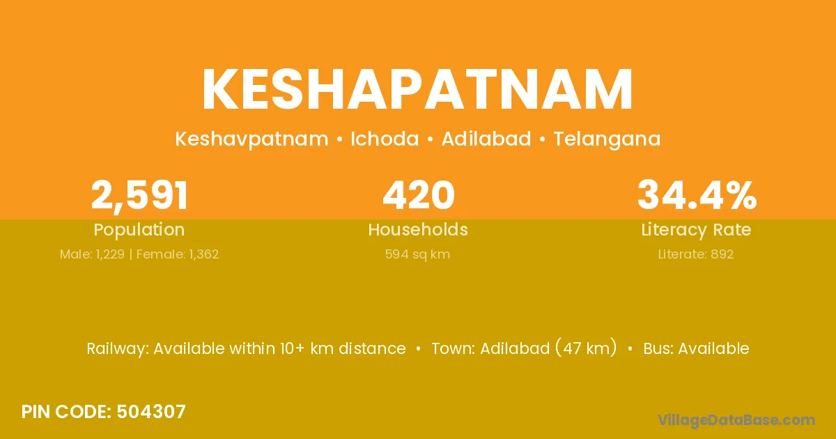 Adilabad (47 km) is the nearest town to Keshapatnam village for major economic activities and is located approximately 47 km away.