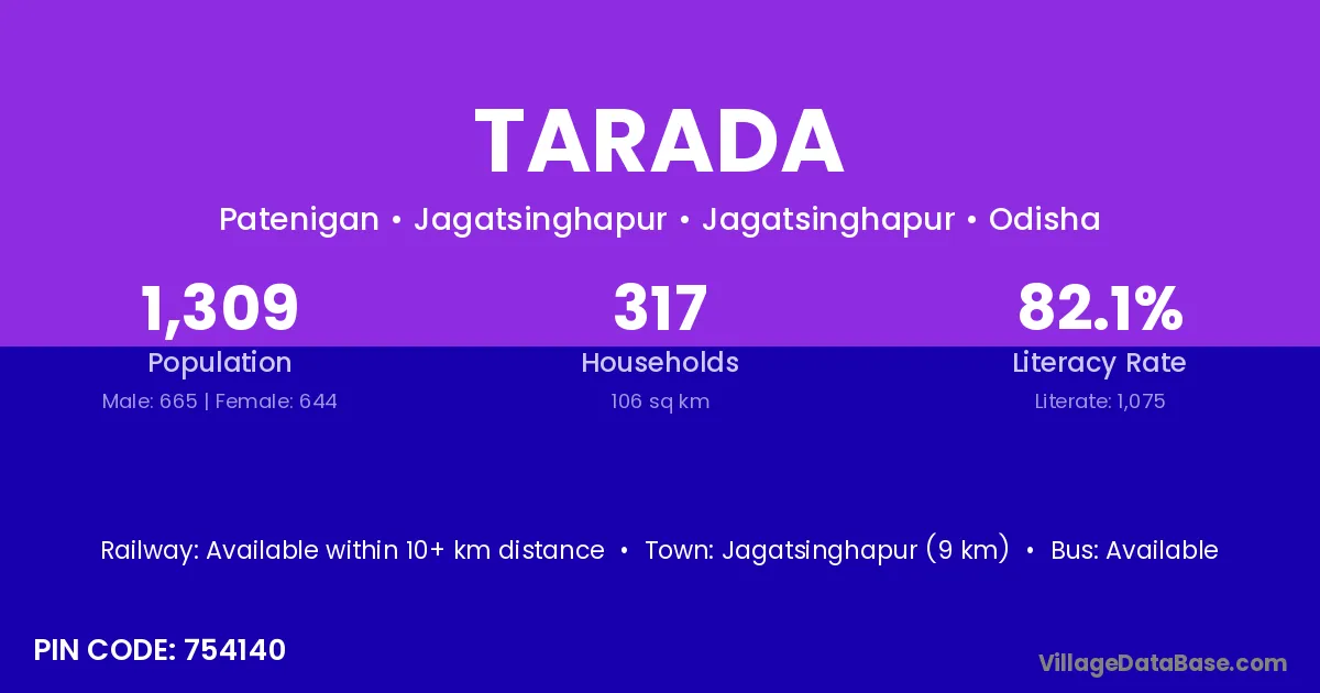According to Census 2011 information, the village code of Tarada village is 504309.