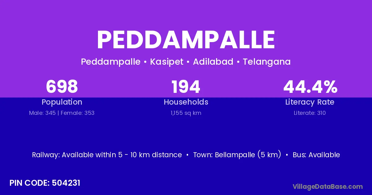 Peddampalle village has a total population of 698 people, of which 345 are males and 353 are females.