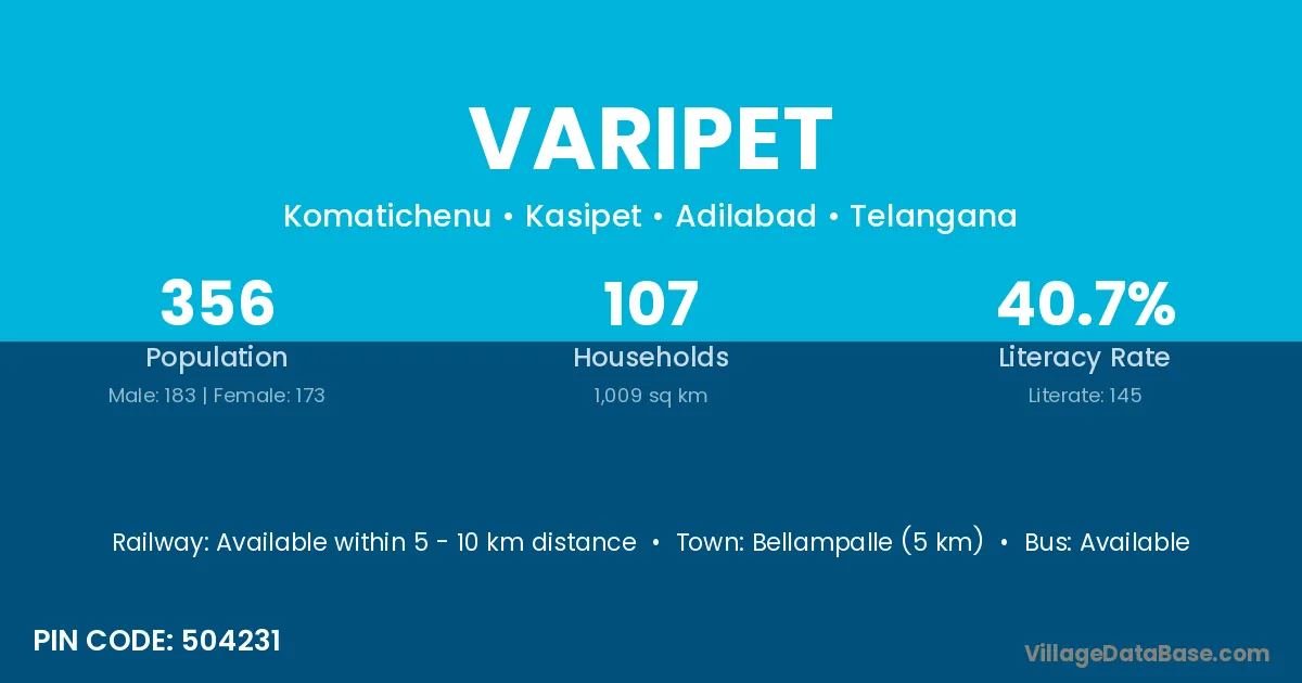 Bellampalle (5 km) is the nearest town to Varipet village for major economic activities and is located approximately 5 km away.