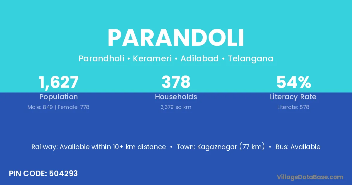 Kagaznagar (77 km) is the nearest town to Parandoli village for major economic activities and is located approximately 77 km away.