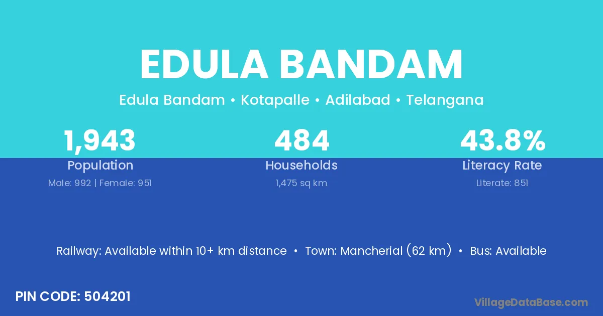 Edula Bandam village has a total population of 1,943 people, of which 992 are males and 951 are females.