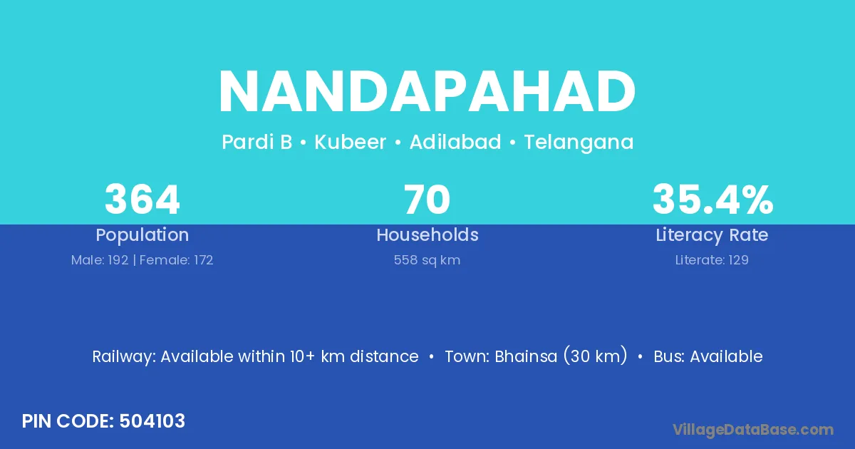 Bhainsa (30 km) is the nearest town to Nandapahad village for major economic activities and is located approximately 30 km away.