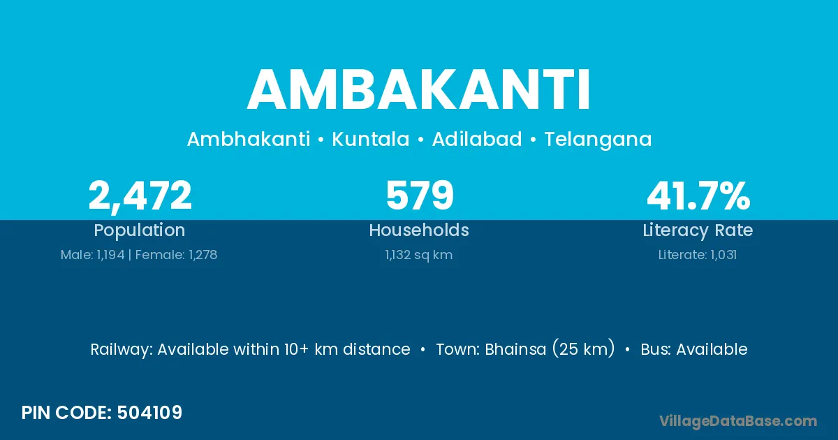 Bhainsa (25 km) is the nearest town to Ambakanti village for major economic activities and is located approximately 25 km away.