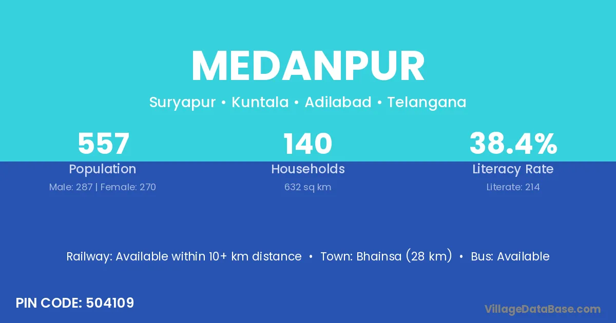 According to Census 2011 information, the village code of Medanpur village is 504109.