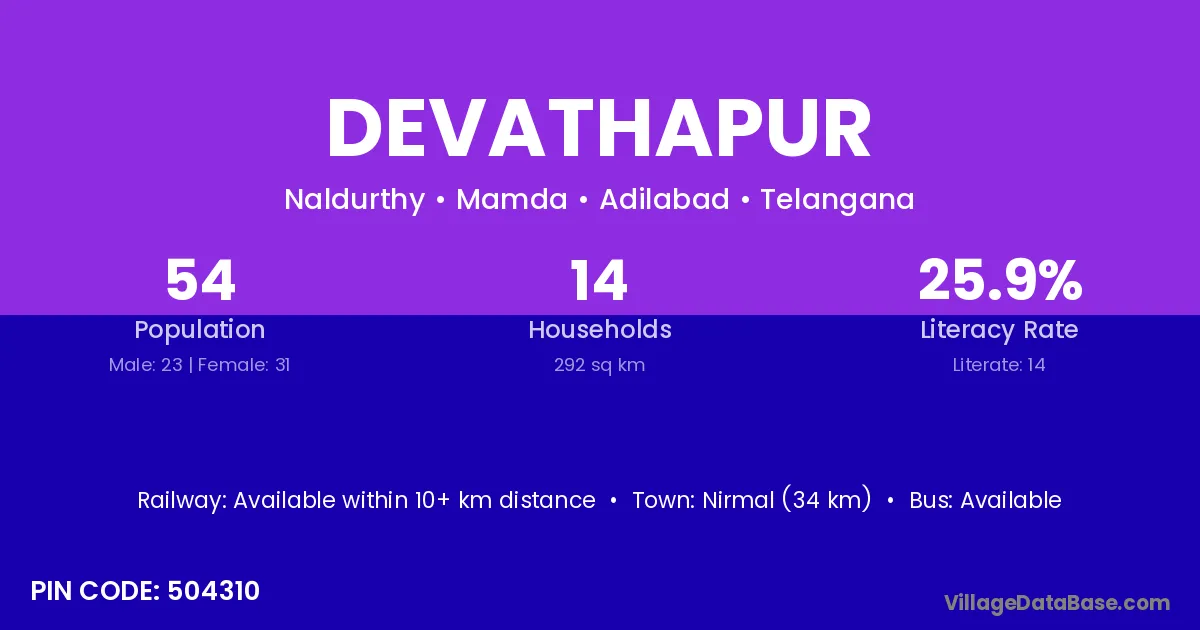 Nirmal (34 km) is the nearest town to Devathapur village for major economic activities and is located approximately 34 km away.