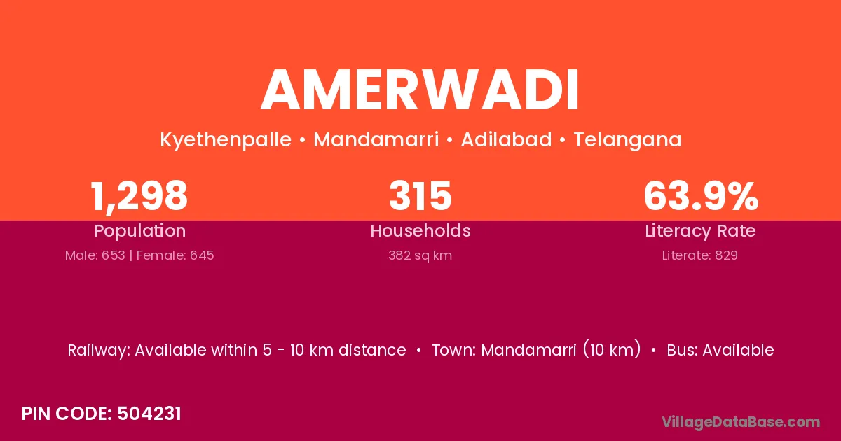 Mandamarri (10 km) is the nearest town to Amerwadi village for major economic activities and is located approximately 10 km away.