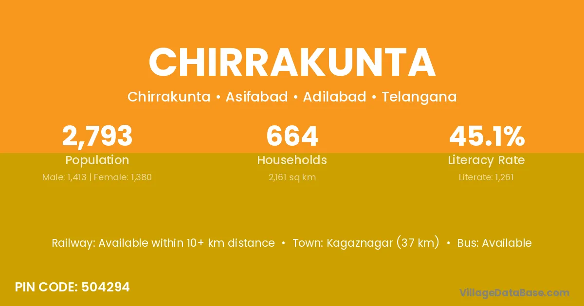 According to Census 2011 information, the village code of Chirrakunta village is 504231.