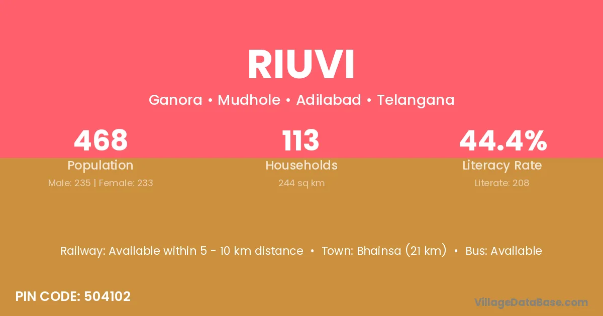 Bhainsa (21 km) is the nearest town to Riuvi village for major economic activities and is located approximately 21 km away.