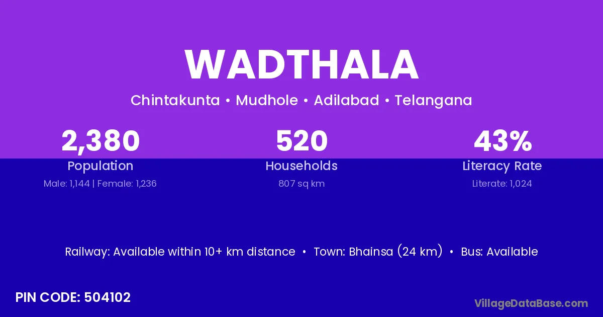 Bhainsa (24 km) is the nearest town to Wadthala village for major economic activities and is located approximately 24 km away.