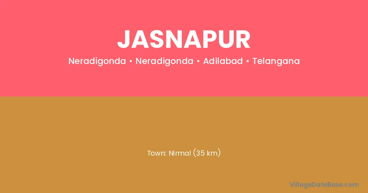 Nirmal (35 km) is the nearest town to Jasnapur village for major economic activities and is located approximately 35 km away.