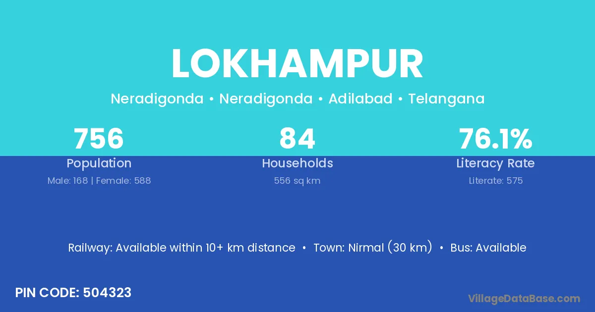 Nirmal (30 km) is the nearest town to Lokhampur village for major economic activities and is located approximately 30 km away.
