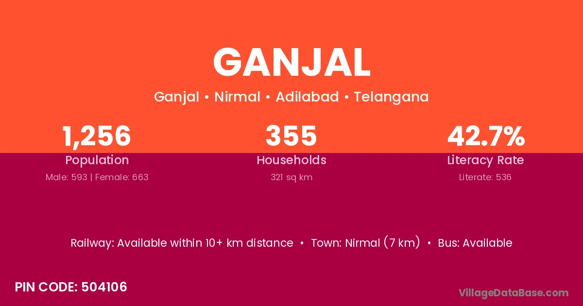 Nirmal (7 km) is the nearest town to Ganjal village for major economic activities and is located approximately 7 km away.